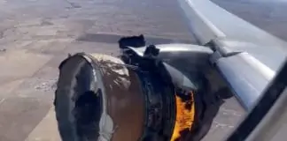 Stunning video of Boeing 777 as engine blows, dropping parts below