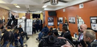 Harris Panders with a Cringey Copycat Skit in a Black Barbershop