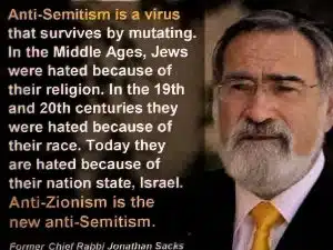 As the late Chief Rabbi of the United Kingdom, Jonathan Sacks, explained: “Anti-Semitism is a virus that survives by mutating. In the Middle Ages, Jews were hated because of their religion. In the 19th and 20th centuries, they were hated because of their race. Today they are hated because of their nation state, Israel. Anti-Zionism is the new anti-Semitism.”