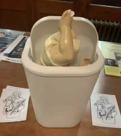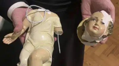 In a post on Facebook, they wrote: “We ask prayers for reparation tonight on this Vigil of the Lord’s Nativity, for the attack upon the Child Jesus, taken from the throne above the altar; also for the desecration of relics in the Lady Chapel, violence at the crib in the side aisle, and blood spilled in the sanctuary, side chapel and nave.