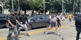 Antifa and anti-mask protesters break out in a mass brawl in...