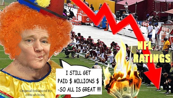 FYI: NFL head Roger Goodell’s current salary is $64 MILLION per year (plus additional bonus money) to destroy the NFL and insult normal, real Americans
