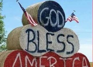 Nextdoor on TwitterΒ deleted a photo depicting bales of hay topped with American flags that say 'God Bless America' in honor of the 4th of...