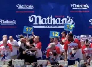 Joey Chestnut Captures Crasher While Downing 63 Hot Dogs