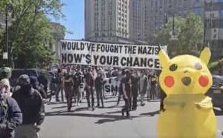 A cute yellow costumed person is marching through New York City streets calling for people to fight the Nazis, equating ICE to Nazis. It...