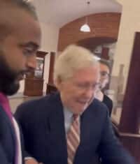 Sen. Mitch McConnell (R-Ky.) took a hard fall on Thursday while trying to speed away from a protester asking about ICE. The footage is...