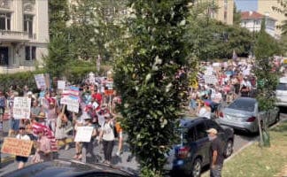 Communists and likely Crowds-on-Demand protesters with professionally-printed signs are marching in the Free DC protest. The well-organized "grassroots" march is just another anti-Trump parade...