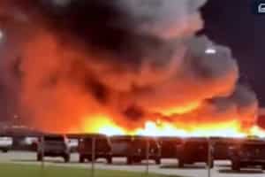 57 Rivian EVs Go Up in a Fireball in the Parking Lot