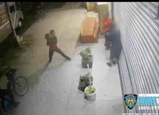 The New York City Police Department is hunting for three suspects, one of whom was seen on video hurling a cinder block at a...