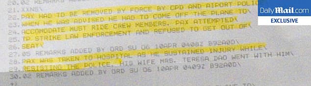 In the clip, the police officer is heard telling Dr Dao he will have to drag him off. A female passenger sitting behind Dr. Dao took the video.