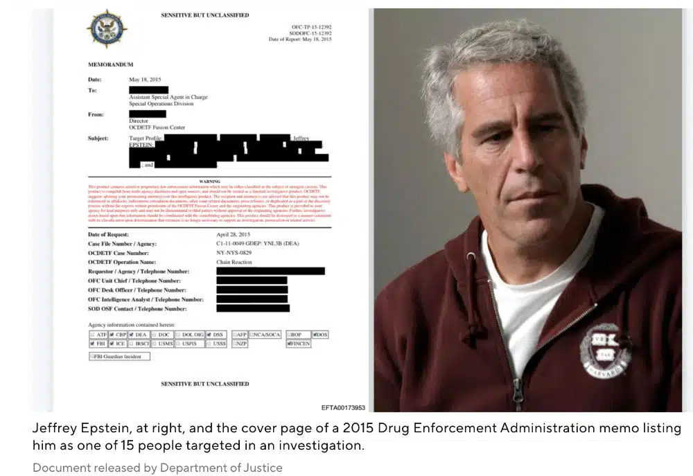 CBS News reports that Jeffrey Epstein was the subject of a previously undisclosed U.S. Drug Enforcement Agency investigation. It lasted over 5 years and involved 14 others. It involved suspicious money transfers tied to illegal narcotics.