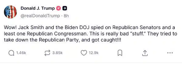 They have evidence that Bidens DOJ, was directly involved in helping start Jack Smith’s WitchHunt of Trump