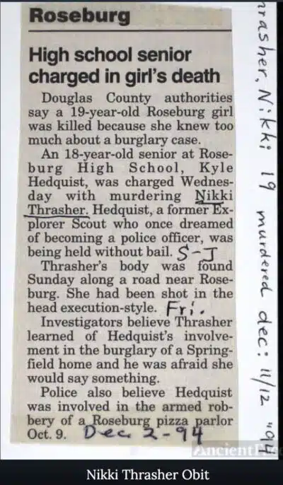 The high school senior, Kyle Hedquist, was an Explorer Scout and an aspiring police officer. In 1995, he was convicted of Nikki’s murder and was sentenced to a life sentence without parole. In April of 2022, Oregon Governor Kate Brown granted him clemency.
