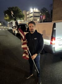 He took home the burnt flag he rescued last night after his release from prison. Whatever you think of this situation or Nick, he fights for the USA!