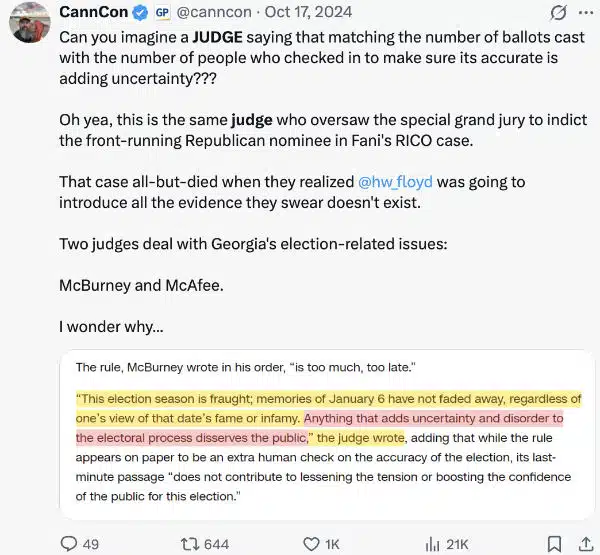 On top of tossing the suit, the judge ordered the four plaintiffs to pay nearly $40,000 to Fulton County and the county Superior Court clerk’s office for filing the frivolous suit.