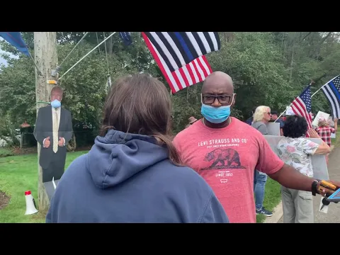 One of the BLM grew violent and made the local papers. He needs to be picked up for punching and pushing an older Trump-police supporter.
