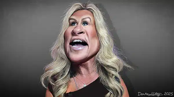 Marjorie Taylor Greene – Caricature (54721627911).jpg: Courtesy DonkeyHotey