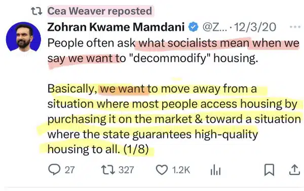 Collectivist Cea Weaver, Zohran’s Tenant Director, has demanded in one now-viral clip that private home ownership must become shared equity. It must become a collective good. She added that it will especially affect white families, but also some people of color who own homes.