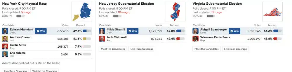 As reported, Virginia Democrats ran away with every race. The Democrats even voted for Jay Jones who dreams of his opponent’s small child dying in his mother’s arms. Spanberger is the new governor and she plans to put boys in girl’s bathrooms. The Islamist leftist won in the Lt. Gov. race.