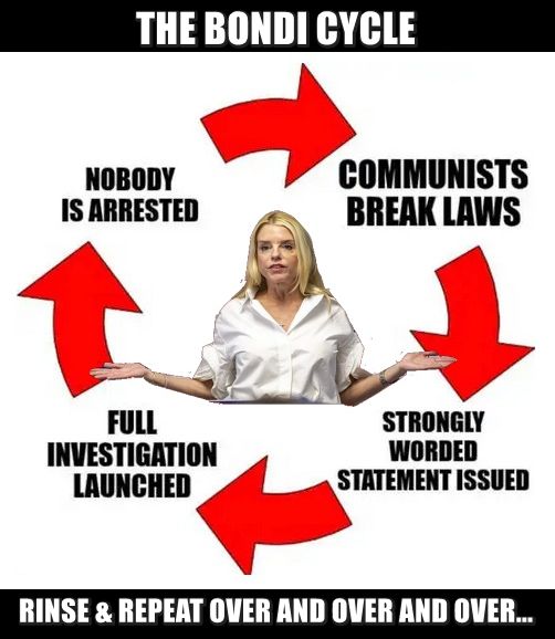 Look how fast she reacted to that situation, because it makes great PR. Fox and Newsmax will be all over the story, gloating over the charges. RINO Princess Bondi is deliberately not protecting our USA. She is a huge black mark on the Trump presidency. To not act on major criminal actions which jeopardize our USA is by definition corruption.… Read more »