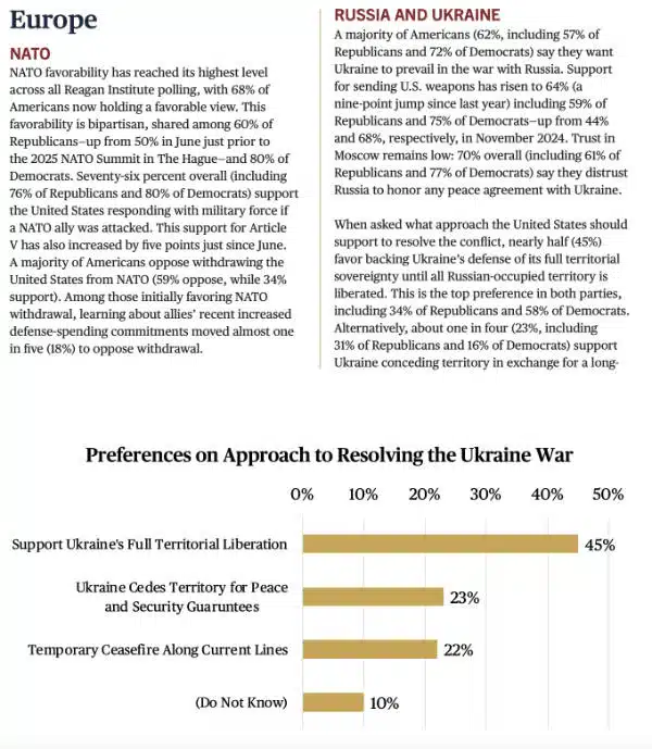 A Gallup poll in March found that 46% of Americans want to do more for Ukraine. The Reagan survey seems to be more a measure of what the respondents would like if they could have everything they wanted.