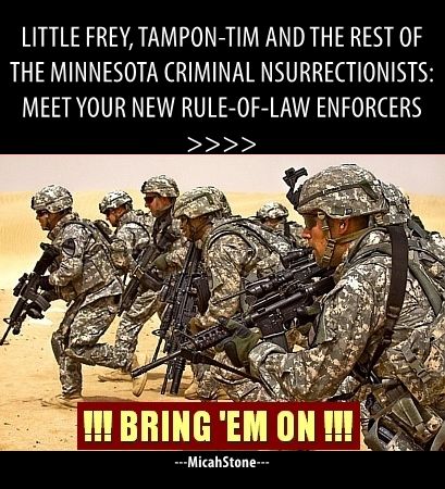 It time to STOP CODDLING Little Frey, Tampon Tim and all the other Soros-paid criminal insurrections. Time to implement THE INSURRECTION ACT and send in the TROOPS !!! >>