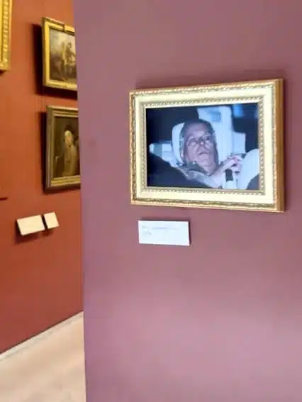 Someone hung Andrew’s arrest photo in the Louvre.