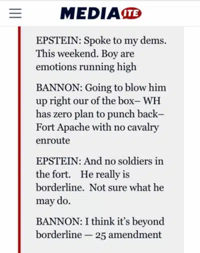 In the above exchange between Bannon with his filmmaker hat on and film subject Jeffrey Epstein, Steve reiterated what was already public (see Vanity Fair 2017): that he believed Democrats and RINOs would use the 25th Amendment to remove Donald Trump as President.