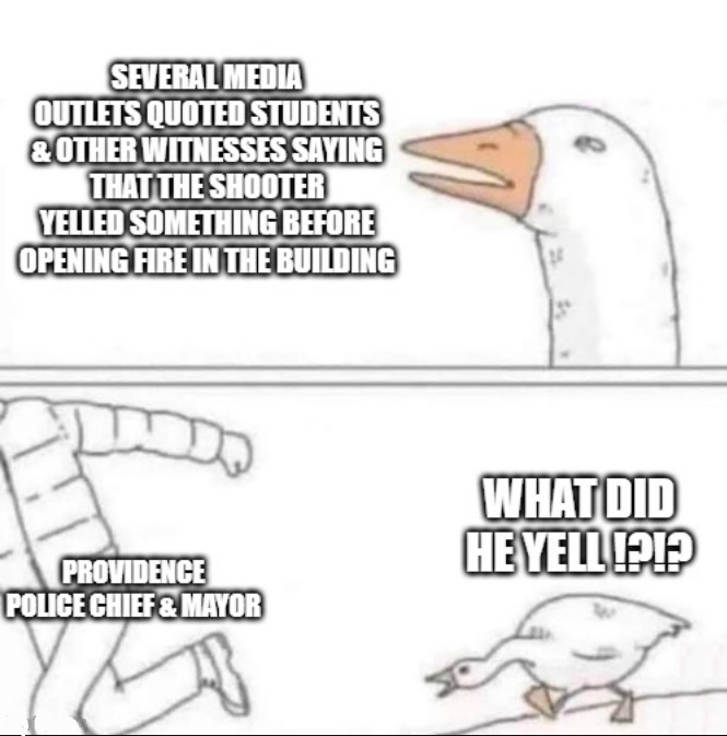 The Providence Police won’t tell us what the Brown University killer yelled out before he began shooting because it’s part of the investigation. Perhaps they are keeping it quiet because it goes against the narrative.