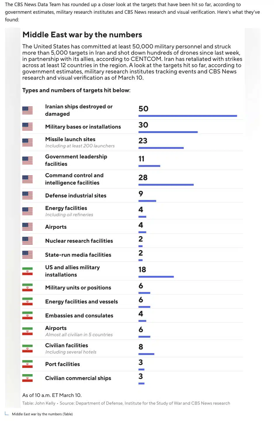 The following is a compilation of targets hit according to the CBS News team. CBS News is still corrupt, but the information comes from legitimate sources. Of the civilian facilities hit (USA Today): three hotels were damaged with one person injured; several airports sustained minor damage, with one death; three ports experienced some disruption; and some tourist and residential areas sustained some disruption, with some people injured, but no reported deaths. The only proof of a school being hit was from Iranian media.