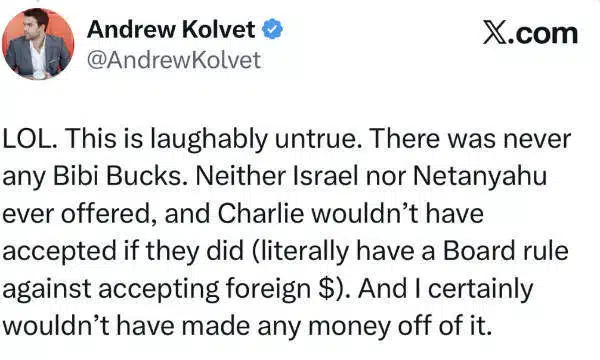 “Candace Owens has leveled a flood of allegations against people at Turning Point USA, people at Turning Point action and people who work for this show. She’s made them against some of Charlie’s closest friends and against some of his most dedicated employees. She has suggested that Michael McCoy, Charlie’s Chief of Staff, knew Charlie would be murdered, was happy that he died, and stayed silent because he was told he would be the next Charlie.