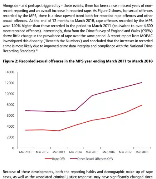 Census.UK does not keep records of early statistics on rapes. However, in the rape review chart below, they say the rapes in 2018 were 140% higher than in 2011.