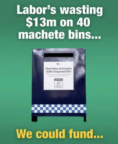 Victoria’s controversial machete amnesty bin program has netted more than 1,300 weapons in the first two weeks of operation. That is a government figure.