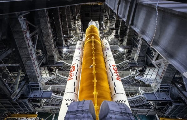 “So that’s what we’re talking about coming up with Artemis II. This is a whole other caliber of rocket. It’s going to have two solid rocket boosters, a throwback from the shuttle era. Even the center core, you know, looks like the Shuttle main fuel tank. It’s got shuttle main engines on it. It’s liquid oxygen, liquid hydrogen. And it is going to accelerate the, you know, those brave crew, Artemis II astronauts, farther into space than we ever sent anyone before,