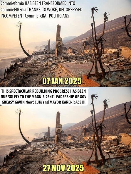 Thanksgiving is BANNED in Commiefornia, where the RESIDENTS…err, INMATES…err, SUCKERS….err, MORONS who reside there are mandated to JUST GIVE to the state and Commie-cRAT politicians (who then give part of the loot to ILLEGALS for their ILLEGAL VOTES).