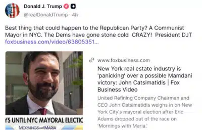 CEO John Catsimatidis (Cats) joined Maria Bartiromo on her morning show and told her the real estate industry is terrified of Zohran Mamdani. As Cats said, Zohran sounds like Castro. Trump said Democrats have “gone stone cold crazy.” It’s true. Let’s pray, Democrats get the courage to kick these people out of the party and stop giving them power and credibility if there are any real Democrats left. The Socialist Party plans to have full control of the party by 2028.