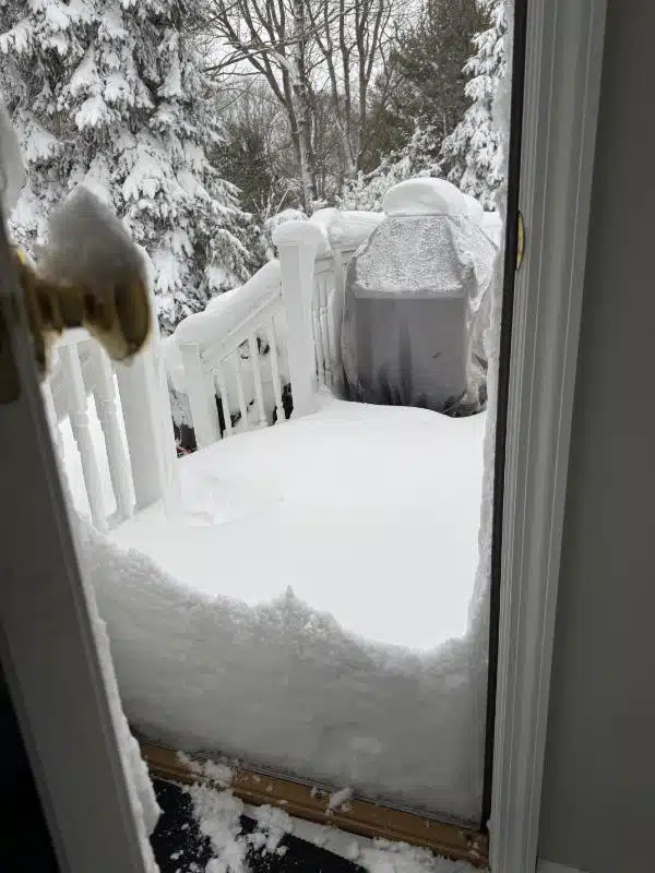 This is out my front door, and you can’t see my steps. We had 40 mph gusts. I want to get paid for shoveling this pretty mess.
